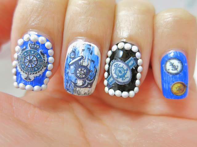Anyways, I created this dark manicure with some nautical images and it reminds me of some haunted pirate ships. I love how I did the base with a dry brush. I think it would looks great on its own.